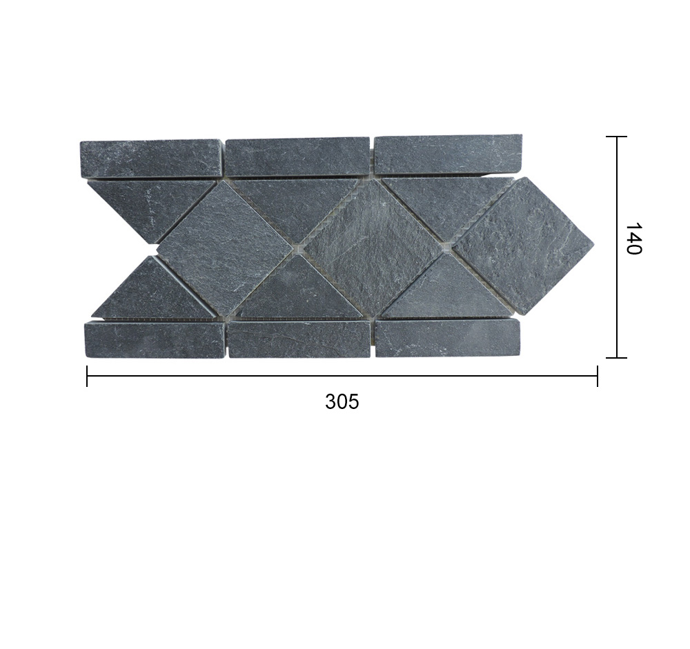 ![]() | 品名:VNS-2011 黑色腰線 標(biāo)準(zhǔn)尺寸:140*305*9-12 MM 重量:約30KG/M2 包裝:國(guó)內(nèi)木箱 / 出口:紙盒+木箱 出廠價(jià)格:¥185/M2 FOB天津港價(jià):($36/M2) 包裝說(shuō)明 腰線的個(gè)性化 它就像一根美麗的腰帶,環(huán)繞在墻面磚中間,為單調(diào)的墻面增色,改變空間的氣氛。 了解天然板巖文化石詳情請(qǐng)咨詢(xún)我們 |