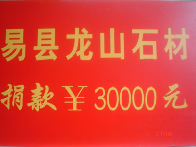 舉世矚目的四川汶川地震重大災(zāi)害,我龍山石材有限公司和全中國人民一樣沉浸在悲痛之中,自發(fā)的開展了抗震救災(zāi)、奉獻(xiàn)愛心募捐活動,截止5月15日上午9:30分,本公司共捐資30000元,甚至龍山石材園區(qū)的上百名普通員工在廠長的帶領(lǐng)下也紛紛表示自己的愛心。