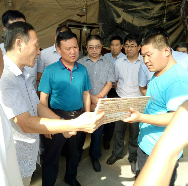 各位領導來我司視察了微型加工各車間的環保情況,先對廢水循環三級沉淀濾清后使用,泥漿晾曬池進行了觀看,認可了廢水處理情況,其中,袁慶云局長提出了在泥漿晾曬池及循環池連接處打一小孔將池中的積水處理到循環池中的建議。然后參觀了加工車間及生產的文化石產品,最后參觀了粘板車間,對該車間馬上安裝VOC設備給予了肯定。