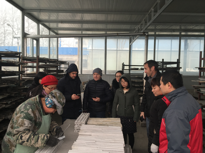 2018年1月22上午,在公司領導的陪同下,來自法國安達屋超市的客戶到我公司進行參觀、考察、商務洽談,期間公司領導向外國客戶詳細介紹了龍山石材有限公司發展歷史及我公司的制造工藝。