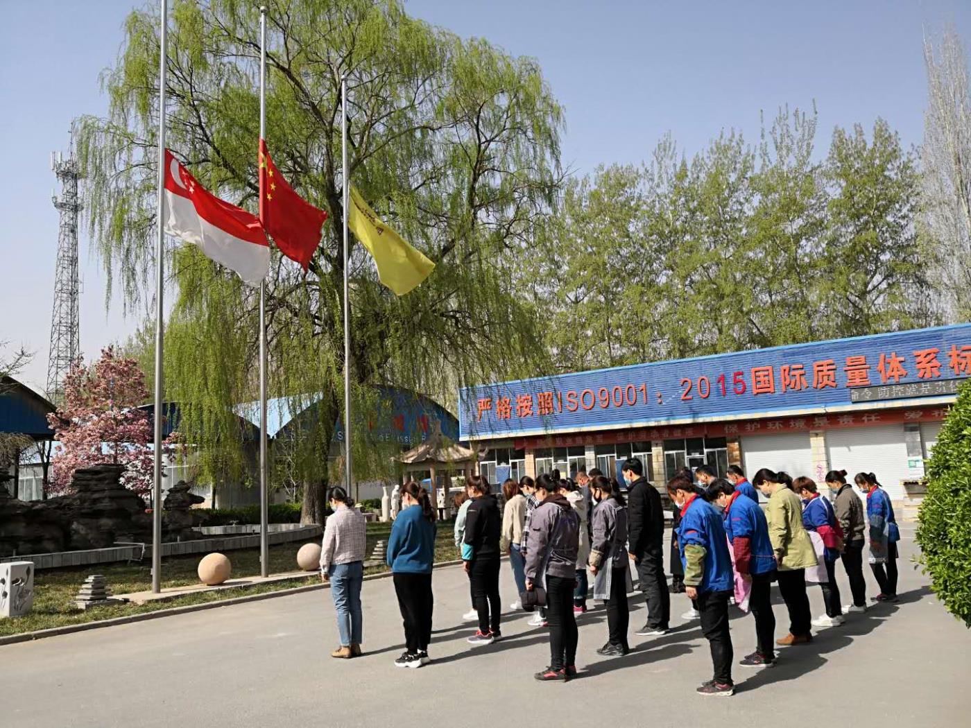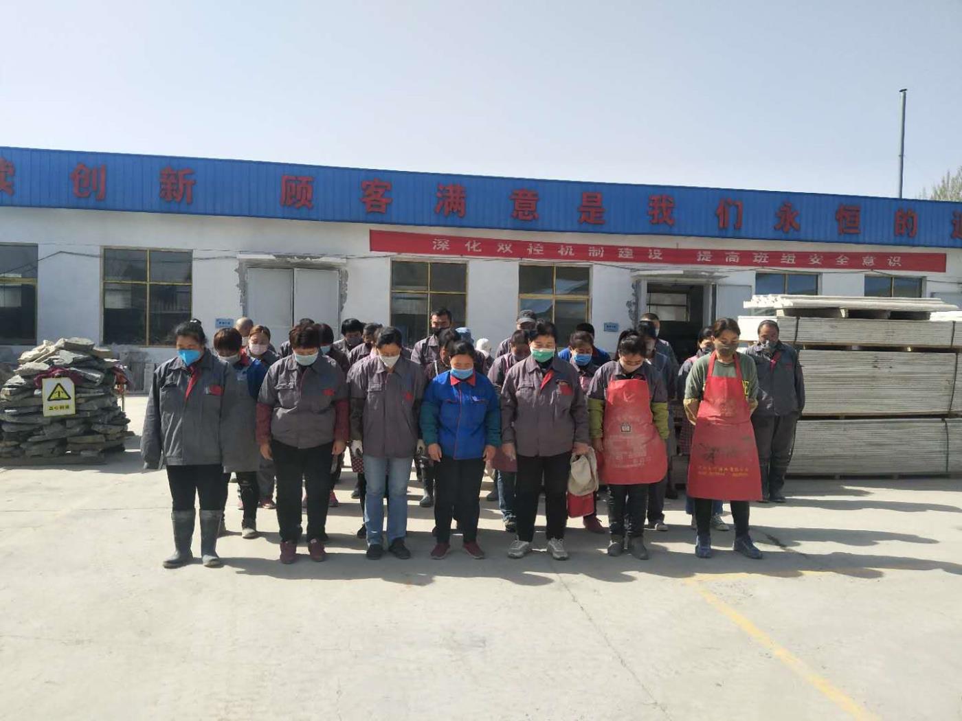 2020年4月4日上午10時,龍山石材全體員工向新冠肺炎疫情犧牲烈士和逝世同胞默哀3分鐘。