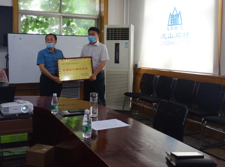 6月19日上午,保定市人大常委會(huì)副主任、易縣縣委書(shū)記楊義寶在縣委常委縣委辦主任郝衛(wèi)國(guó)的陪同下來(lái)易縣龍山石材有限公司,為我公司授牌“外貿(mào)出口重點(diǎn)企業(yè)”,全程由龍山石材總經(jīng)理耿立新接待。