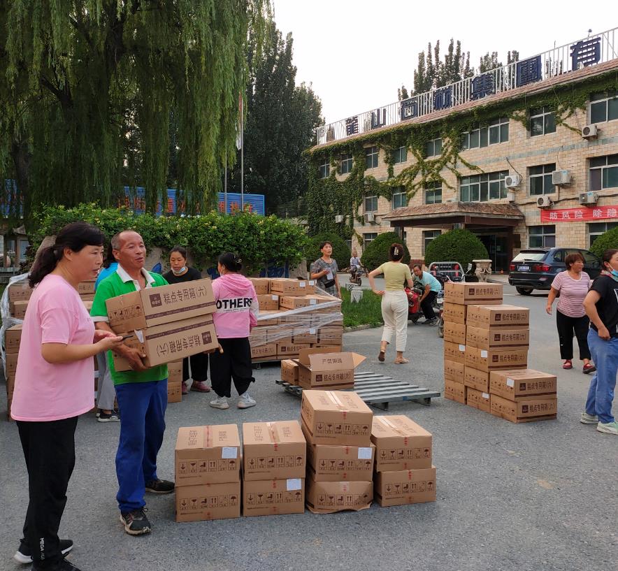 收到受捐物資的第一時間,龍山石材總經理耿立新立即安排組織人員將物資轉捐給高村鎮政府、水利部門、龍山石材、啟明公司、西北齊村委、西市村委、卓家莊村委等抗洪、防疫第一線的執勤人員及西北齊村、西市村、卓家莊村三村的貧困戶家庭。當受捐代表拿到愛心企業為他們捐贈的物資時,臉上露出了幸福的笑容。