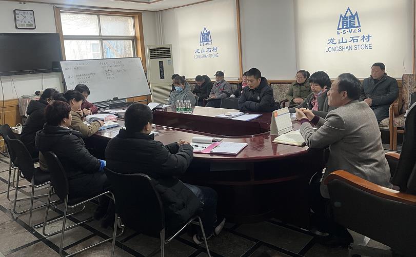 2022年1月22日至24日龍山石材利用三個上午召開了公司2021年工作總結會,龍山公司的銷售、財務、采購、生產、開發、后勤、辦公行政等11個部門的負責人及相關人員參加了會議。公司總經理耿立新主持了會議。