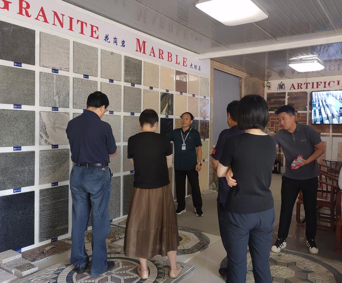 耿立新總經(jīng)理向馮局長一行介紹了龍山石材的生產(chǎn)、銷售等情況。馮局長一行走進龍山石材產(chǎn)品展廳,參觀龍山的主營產(chǎn)品,耿總將易縣的花崗巖系列及文化石系列產(chǎn)品進行了詳細解說。隨行的陳博士,梁總等對龍山的產(chǎn)品有極高的興趣,并就生產(chǎn)及銷售的關鍵環(huán)節(jié)進行了詢問。耿總就客人提出的問題也一一做了具體解答。