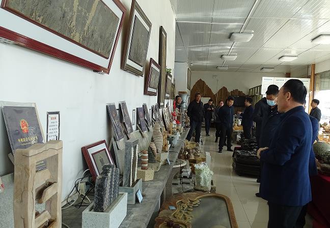 接著耿總帶各位領導到龍山石材展廳參觀。耿總將易縣的花崗巖系列及文化石系列產(chǎn)品進行了詳細解說,并重點介紹了我們自主研發(fā)的美泉石加濕器。袁主席一行對龍山的產(chǎn)品有極高的興趣,并就生產(chǎn)及銷售等環(huán)節(jié)進行了詢問。耿總就客人提出的問題也一一做了具體解答。
